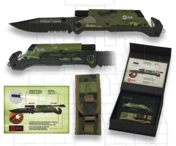 • Versatilidad: Aunque su origen es táctico, la robustez de las navajas y cuchillos K25 los hace perfectos para una gran variedad de usos, desde la caza y el camping hasta tareas de rescate y seguridad.